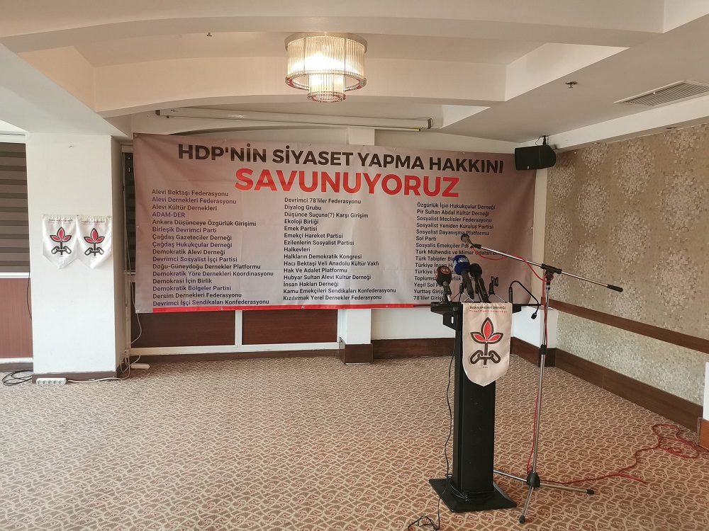 İHD Genel Merkezi’nde bir araya gelen 46 kuruluş, Halkların Demokratik Partisi’ne (HDP) açılan kapatma davasına karşı, “Siyaset Yapma Hakkını Savunuyoruz” başlıklı bir basın toplantısı düzenledi.
