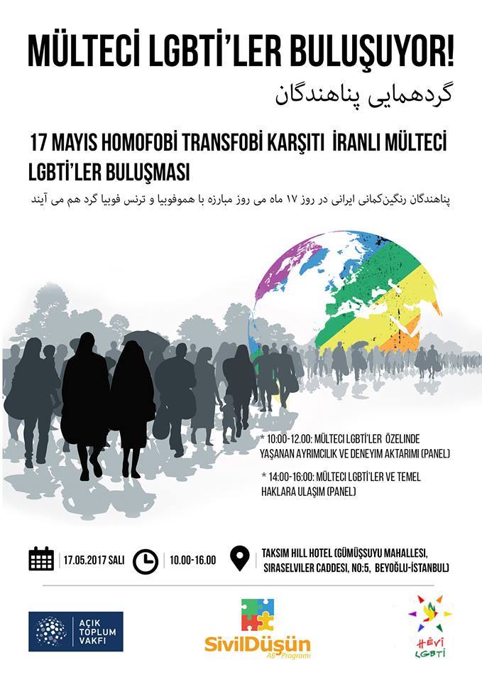 Hevi LGBTİ Derneği’nin bu yıl 2. sini düzenlenen mülteci LGBTİ’ler özelinde 17 Mayıs Homofobi ve Transfobi Karşıtı Buluşma’da Yalova, Denizli ve Eskişehir’den gelen mülteci LGBTİ’ler Türkiye’de yaşadıkları sorunları; ayrımcılık ve ırkçılığı konuşacak.