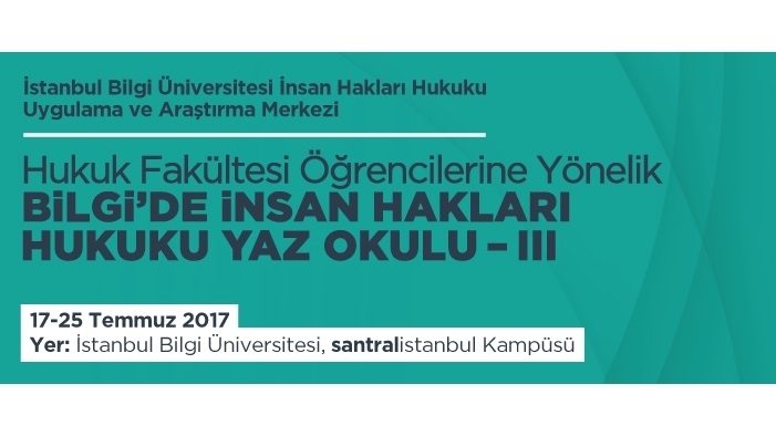 İstanbul Bilgi Üniversitesi İnsan Hakları Hukuku Uygulama ve Araştırma Merkezi bu yıl üçüncüsünü düzenleyeceği “BİLGİ’de İnsan Hakları Hukuku Yaz Okulu” için başvuruları kabul etmeye başladı. 17-25 Temmuz 2017 tarihleri arasında İstanbul Bilgi Üniversitesi Santralistanbul Kampüsünde gerçekleştirilecek İnsan Hakları Hukuku Yaz Okulu Türkiye’deki üniversitelerin 2017-2018 güz döneminde 3. ve 4. sınıfta okuyacak olan hukuk fakültesi öğrencilerine yönelik olacak.