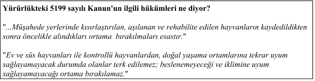 Her dönem duyduğumuz “Hayvana işkenceye hapis cezası geliyor” müjdelerinin (!) gerçekten uygulunabilir bir şekilde hapis cezası getirilse dahi, o hayvanlar sokaklardan silindikten sonra, hiçbir anlamı kalmayacağını da hatırlatmak istiyorum. Yüzbinlerce hayvanın kaderi, her dönem ne şekilde değiştirileceği dahi belli olmayan, sivil toplumun yasama süreçlerinin dışında bırakılmak istendiği, gizli saklı hazırlanan yasa tasarıları ile değiştirilmek isteniyor.