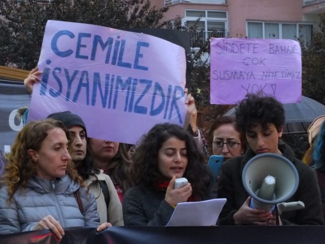 Mersin Kadın Platformu bileşeni kurumlar boşanmak istediği eşi tarafından katledilen Cemile E. için bir araya geldi. Pozcu’da bir mağaza önünde toplanarak ses çıkarma eylemi yapan kadınlar davanın takipçisi olacaklarını ifade ederek 25 Kasım’daki taleplerini yinelediler.