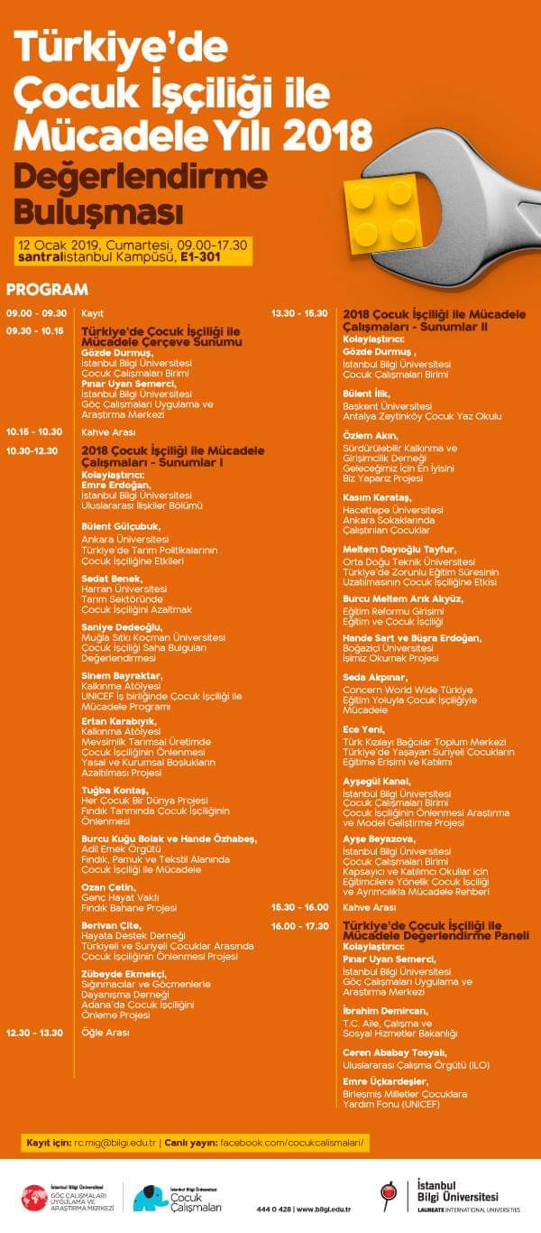 İstanbul Bilgi Üniversitesi Çocuk Çalışmaları Birimi ile Göç Çalışmaları Uygulama ve Araştırma Merkezi ortaklığında düzenlenen toplantıya çocuk işçiliğini önleme ile ilgili çalışmalar yürüten birçok kişi katıldı. Saha deneyimleri, veri paylaşımlarının yapıldığı toplantıda çocuk işçiliğini önlemek için kurumların yürüttükleri projeler aktarıldı. Toplantının “2018 Çocuk İşçiliği ile Mücadele Çalışmaları” oturumunda Hayata Destek Derneği’nden Berivan Çite, “2016’ya kadar gezici mevsimlik tarım alanında Ordu, Düzce, Zonguldak, Adana’nın düzenli olarak bir yılının tarım yapıldığı ilçelerde çalışmalar gösterirken 2016’dan sonra ise Hayata Destek Derneği’nin kendi çalışma yürüttüğü diğer illerde olan Toplum Merkezleri aracılığıyla kent içindeki çocuk işçiliğiyle de çalışmalar devam etti. Gezici tarım, sokakta çalıştırılma, küçük ve orta ölçekli ağır ve tehlikeli işlerde çalıştırılma alanlarındaki çocuk işçiliği en öncelikli müdahale ettiğimiz programlar oldu. Hayata Destek Derneği’nin UNICEF ile beraber devam ettirdiği hem Türkiyeli hem Suriyeli çocuklar arasında çocuk işçiliğini önlemeye yönelik program devam ediyor.” diyerek dernek olarak çocuk haklarını savunduklarını, tüm çalışmalarda olduğu gibi hak temelli bir yaklaşım ile çalışmalarını devam ettirdiklerini belirtti.