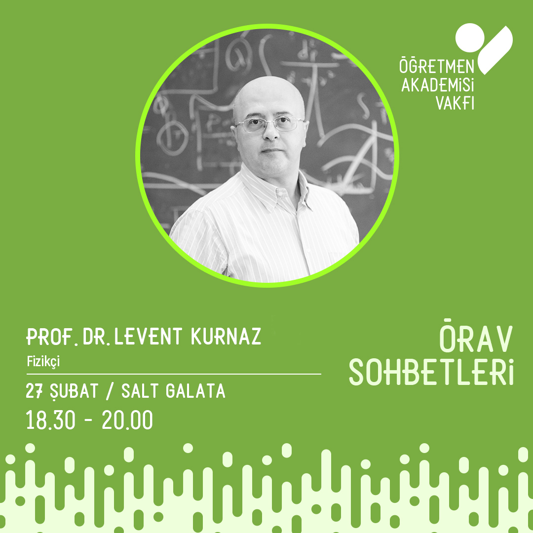 Öğretmen Akademisi Vakfı’nın (ÖRAV) her ay konusunda bir uzmanı ağırladığı etkinliği “ÖRAV Sohbetleri”nin Şubat ayı konuğu Boğaziçi Üniversitesi İklim Değişikliği ve Politikaları Uygulama Araştırma Merkezi Müdürü Prof. Dr. Levent Kurnaz olacak. Fizik profesörü Levent Kurnaz geçen Ekim ayında okurlarıyla buluşan yeni kitabı Astronomi’den yola çıkarak, gökyüzünü, astronominin gelişimini ve Güneş Sistemiyle ilgili ilgi çekici bilgileri katılımcılarla paylaşacak. Etkinlik, 27 Şubat Çarşamba günü saat 18.30 – 20.00 arasında SALT Galata’da gerçekleşecek.