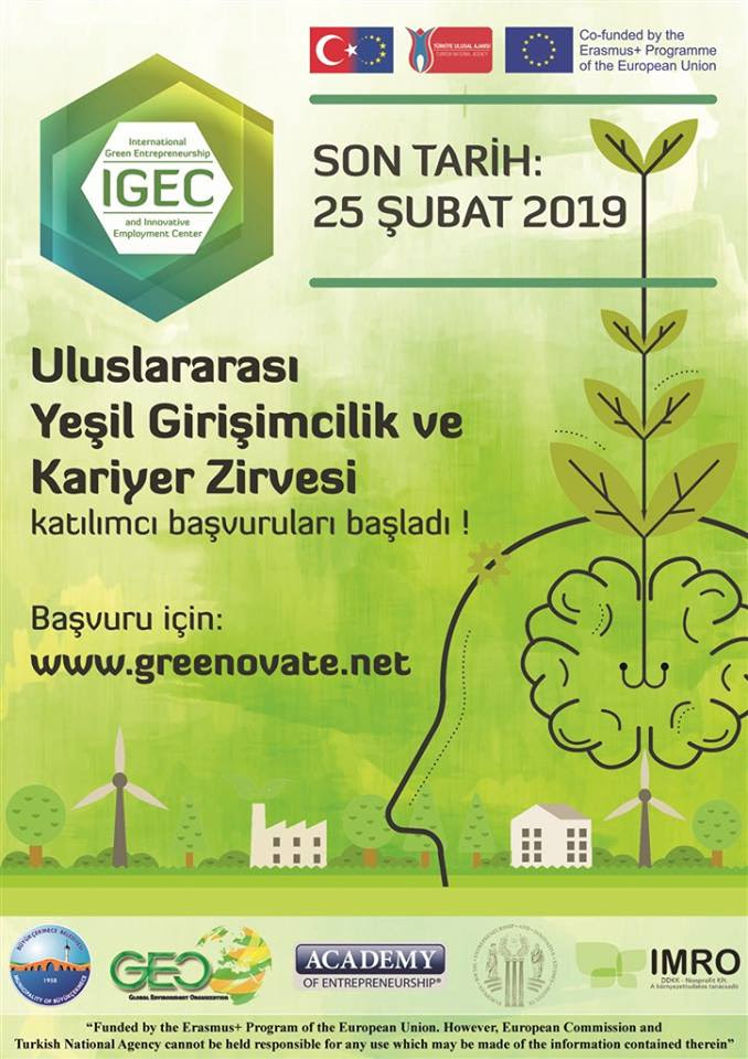 Uluslararası Yeşil Girişimcilik ve Kariyer Zirvesi, 2 Mart 2019 tarihinde İstanbul’da Büyükçekmece Belediyesi ve Küresel Çevre Derneği (GEO) ev sahipliğinde gerçekleştirilecek.