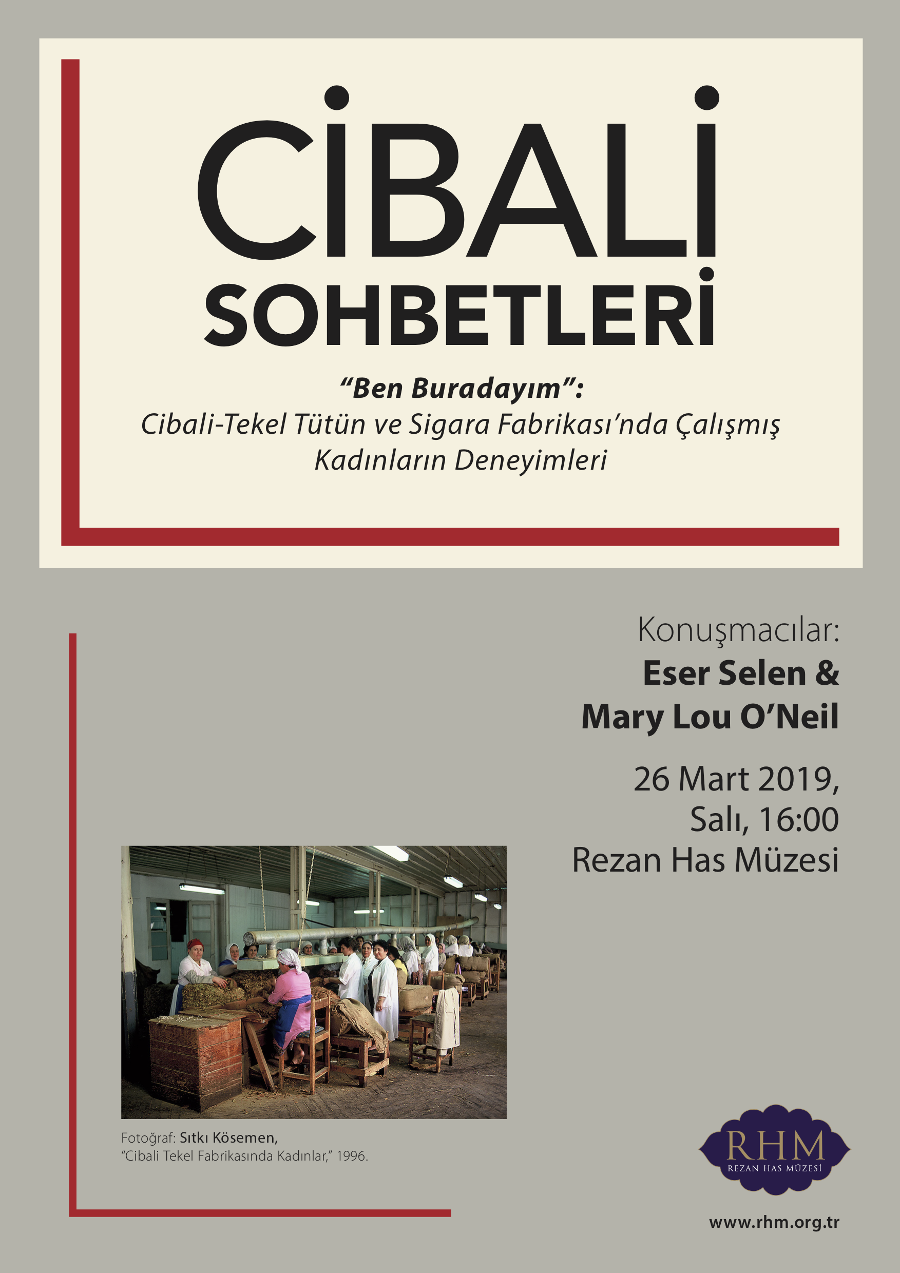 Rezan Has Müzesi tarafından her ay düzenlenen Cibali Sohbetleri bu ay “Ben Buradayım”: Cibali-Tekel Tütün ve Sigara Fabrikası’nda Çalışmış Kadınların Deneyimleri” başlığıyla devam ediyor.