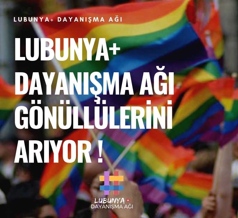 Türkiye’deki LGBTİ+’ların gündelik yaşamlarında maruz kaldıkları insan hakları ihlalleri, toplumsal dışlanma, damgalanma, cinsel sağlık ve üreme sağlığı konularında karşılaştıkları sorunlar ile LGBTİ+ ilgilendiren tüm diğer alanlarda bilgilendirmeyi, harekete geçirmeyi, örgütlemeyi ve LGBTİ+ ihtiyaç ve taleplerine uygun şekilde kamuoyu ve yetkililer nezdinde savunuculuk çalışmaları yapmayı hedefleyen bir dayanışma ağı olan Lubunya+ dayanışma ağı gönüllüleri arıyor.