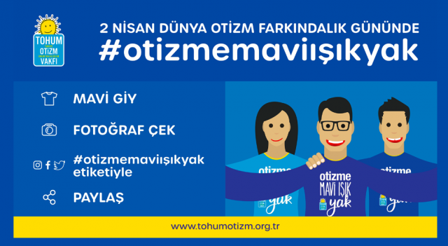 Tohum Otizm Vakfı olarak, 2 Nisan Dünya Otizm Farkındalık Günü’nde kamuoyunun dikkatini otizme çekmek için başlattığımız ve tüm dünyada büyük ilgi gören Mavi Işık Yak Kampanyası (Light It Up Blue) ile Türkiye’de ikonik binalar Aydınlatma Gereçleri İmalatçıları Derneği (AGİD) üyelerinin katkıları ve desteği ile mavi ışıkla aydınlatılacak. Bugün insanlar mavi giyecek ve sosyal medya hesapları üzerinden #otizmemaviışıkyak etiketi ile otizmle ilgili mesajlar vererek otizmin farkında, otizmli bireylerin yanında olduklarını ifade edecekler. Otizm farkındalığına destek vermek için akşam saatlerinde 15 Temmuz Şehitler Köprüsü, Fatih Sultan Mehmet Köprüsü, Galata Kulesi başta olmak üzere, İzmir Saat Kulesi, Masal Şato, Diyarbakır’da Surlar, Amasya Kalesi gibi birçok yapı AGİD üyelerinin katkılarıyla mavi ışıkla aydınlanacak.
