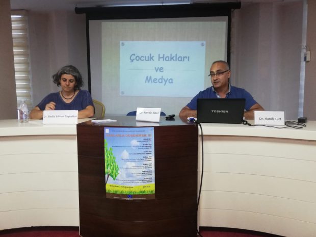 Türkiye İnsan Haklari Vakfı (TİHV) Akademi İnsan Hakları Seminerleri devam ediyor. Haklarla Düşünmek başlığı ile düzenlenen oturumların bu ayki ana konusu çocuk hakları idi. Ege Üniversitesi’nden ihraç edilen İletişimci Dr. Hanifi Kurt ‘Çocuk Hakları ve Medya’ üzerine bir sunum yaparken Mersin Üniversitesi’nden ihraç edilen Sosyolog Dr. Bediz Yılmaz Bayraktar ‘Tarım İşçisi Mülteci Ailelerin Çocukları’ üzerine ile bir sunum gerçekleştirdi.