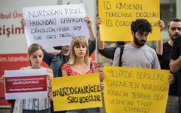 İstanbul Üniversitesi İletişim Fakültesi öğretim üyesi Prof. Dr. Nurdoğan Rigel’e 5 yıl ceza verilmesi kamuoyunda tartışılmaya devam edilirken öğrencileri de sosyal medya üzerinden destek kampanyası yürütüyor. Hocalarına yönelik desteklerini sosyal medya mecralarında günlerdir dile getiren öğrenciler, #NurdoğanRigelSuçluDeğildir etiketini de Twitter’da dünya gündemine taşıdı. Okul önünde basın açıklaması da yapan öğrenciler için bir video yayınlayan Prof. Dr. Nurdoğan Rigel, “Sevgili çocuklarım, 8 yıldır tek başına verdiğim mücadelede artık yanımda bilinçli, pırıl pırıl sizlerin olduğunu bilmekten çok mutluyum. Sizler artık benim mücadelemde bayrağı devralan genç koruyucu meleklerimsiniz. En son size Newton’un ‘devlerin omuzlarında yüksel’ düşüncesini açıklamıştım. Şimdi sizlerin genç, güçlü, özgüvenli ve bilgili omuzlarınızda yükselen bir Nurdoğan Rigel olmaktan ölesiye mutluyum. Benim ilahi adalet savaşçılarım, hepinizi amfi özlemiyle kucaklıyorum” diye konuştu.