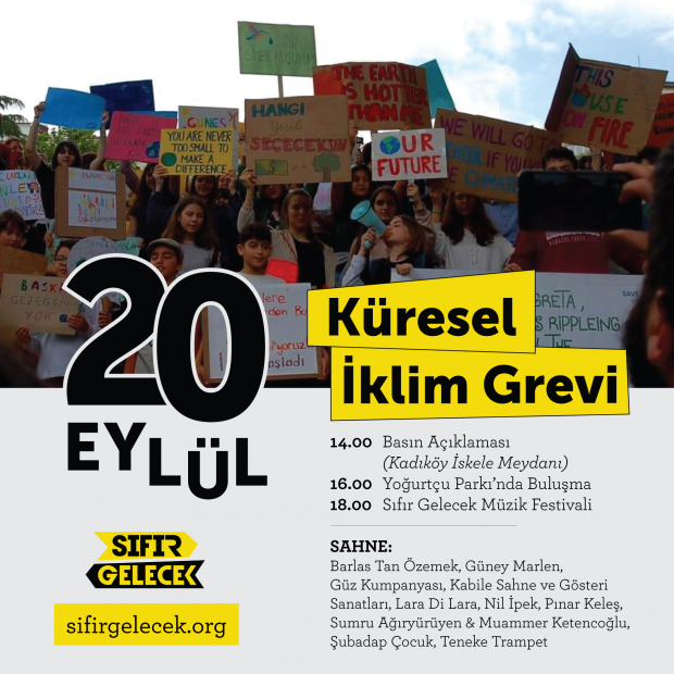 20 - 27 Eylül arasında dünyanın dört bir yanında gerçekleşecek üçüncü küresel iklim grevine destek veren Sıfır Gelecek Kampanyası, 20 Eylül Cuma günü İstanbul / Kadıköy’de gerçekleştireceği etkinlikleri ilan etti.