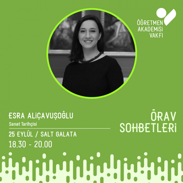 Öğretmen Akademisi Vakfı’nın (ÖRAV), alanında uzman isimleri ağırladığı “ÖRAV Sohbetleri”nin yeni dönem konuğu, Doç. Dr. Esra Aliçavuşoğlu olacak. Bu yıl arka arkaya çok sayıda sanat etkinliğine sahne olan Eylül ayının yoğun gündemine özel olarak düzenlenecek sohbet; çağdaş sanat dünyasına, sanat tarihçisi Aliçavuşoğlu’nun gözünden bakma fırsatı sunacak.