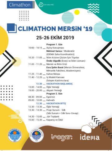 122 şehirde eş zamanlı olarak gerçekleştirilen Climathon ile Türkiye geçen sene tanıştı. İzmir’de gene Idema tarafından düzenlenen organizasyona bu sene İstanbul ve Mersin de dahil oldu. Mersin’de “su, hava ve toprak” ile ilgili sorunlara çözüm bulunması çağrısı ile yapılan Climathon’un kazanan projesi, organik atıkların organik gübre olarak kullanımını öngören Kelebek Etkisi ekibi olurken, yenilebilir su projesi ile Doğa 1 karbon 0 ekibi ikinci, su karbon ayak izinin düşürülmesini hedefleyen proje ile Son Su Bükücüler üçüncü olarak etkinliği tamamladı.