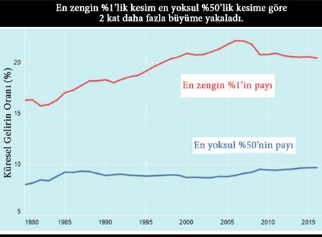 1980’lerden bu yana özellikle Kuzey Amerika, Çin, Hindistan, Rusya ve kısmen Avrupa’da “en zengin %1’lik” kesimin milli gelirden aldığı pay hızla yükseldi. Buna karşın Orta Doğu, Sahra altı Afrika ve Brezilya gibi radikal rejimlere sahip ülkeler ve bölgeler nispeten istikrarlı, ancak toplumsal adalette son derece yüksek düzeyde eşitsizliğe sahip bir grafik çizdiler.