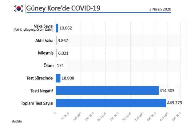 - “Güney Kore’de COVID-19 taşıdığı tespit edilen kişi sayısı 10 bini geçti” TRT Haber, 3 Nisan 2020.