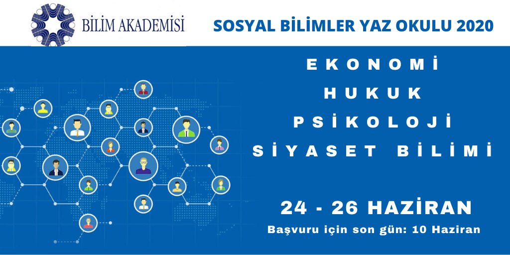 Bilim Akademisi'nin bu yıl ilk defa, 24–26 Haziran tarihleri arasında çevrimiçi düzenlenecek olan Bilim Akademisi Sosyal Bilimler Lisansüstü Yaz Okulu 2020 başlıyor. Ekonomi, Hukuk, Psikoloji ve Siyaset Bilimi alanında eşzamanlı olarak düzenlenecek olan Yaz Okulu, Türkiye'nin farklı üniversitelerinden ve yurtdışından konunun uzmanı hocaların katkıları ile yine Türkiye’nin her tarafından öğrencilere ulaşmayı hedefliyor.