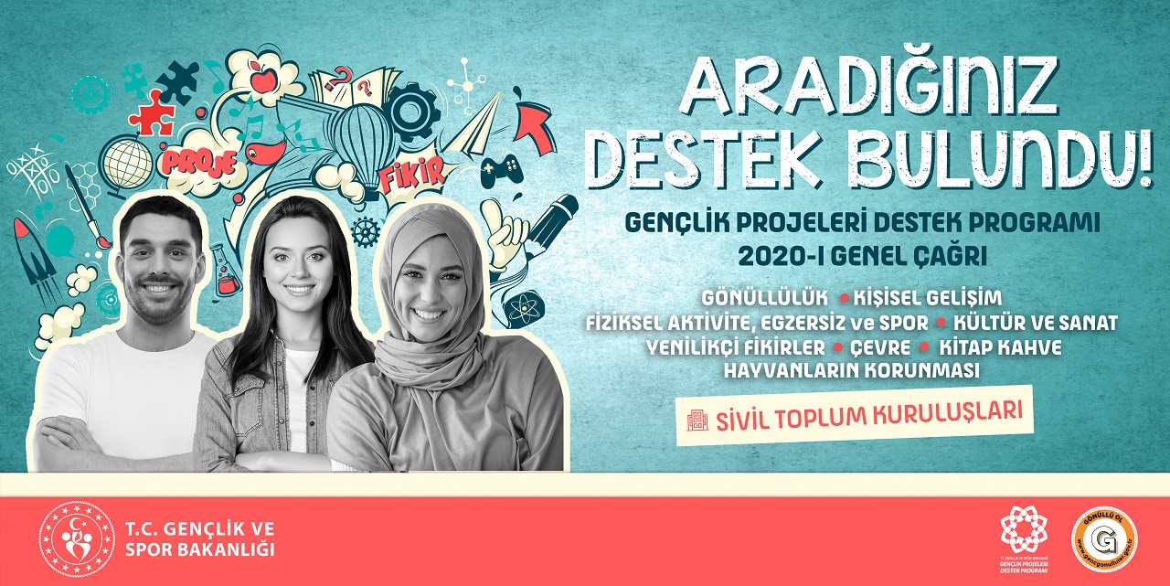 Gençlik ve Spor Bakanlığı, Gençlik Projeleri Destek Programı çerçevesinde, “Gönüllülük”, “Kişisel Gelişim”, “Fiziksel Aktivite, Egzersiz ve Spor”, “Kitap Kahve Projeleri”, “Kültür ve Sanat”, “Yenilikçi Fikirler”, “Çevre” ve “Hayvanların Korunması” alanlarında sivil toplum kuruluşlarının projelerine 35 milyon TL destek verecek.