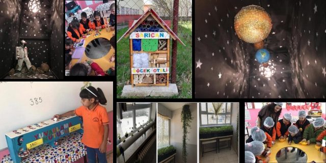 Düşünülenin aksine köydeki öğretmenlerin, öğrencilerine kazanımlar sağlaması açısından daha fazla imkana sahip olduğunu belirten Tuğçe öğretmen çalışmalarını şöyle anlatıyor: “Geçen yıl kuruculuğunu yaptığımız ‘Gamepal’ projesinde İspanya, Hırvatistan, Romanya, Fransa ve İtalya ortaklı oyun temelli proje gerçekleştirdik. Henüz ilçeye bile gidemeyen çocuklarım farklı ülkelerden arkadaşlar edinerek onların dahil olduğu projenin yürütücülüğünü üstlendiler. Bu yıl gerçekleştirdiğimiz ‘Activitypal’ projemizde; Bulgaristan, Romanya ve Türkiye olmak üzere 60 ortakla yine proje kuruculuğunu ve yürütücülüğünü yaptık. Bir mezra okulu olmamıza rağmen yaratıcılığımızı sınırlamadık ve hazırladığımız etkinliklerle diğer proje ortaklarımıza öncülük ettik. Örneğin atık materyallerle fotoğraf makineleri tasarladık. Atık kartonlar ile hazırladığımız Picasso Maskeleri ile canlandırma etkinlikleri gerçekleştirdik. Bunun sonucunda geri dönüşümün önemi üzerine öğrencilerimizde farkındalık oluşturmayı sağladık.”