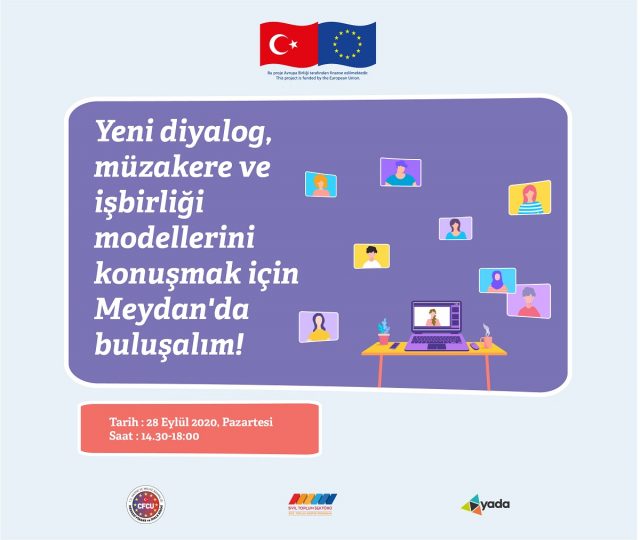 YADA Vakfı, sivil toplum kuruluşları arasında yeni bir diyalog ve müzakere modelini hayata geçirmek üzere düzenlediği, Meydan Buluşmaları serisine “Sivil Diyaloğun Güçlenmesi” projesi kapsamında gerçekleştirecekleri ilk online versiyonu ile devam ediyor. Meydan bu kez 28 Eylül 2020’de diyaloğun ve sivil toplumun krizlerle aldığı yeni şeklini, öğrendiklerini ve öğrenmesi gerekenleri konuşmak üzere çevrimiçi ortamda kuruluyor.