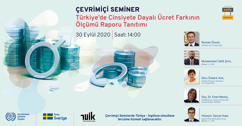 ILO ve TÜİK işbirliği ile hazırlanan Türkiye’de Cinsiyete Dayalı Ücret Farkının Ölçümü Raporu Tanıtımı, 30 Eylül 2020 tarihinde çevrimiçi ortamda saat 14.00’te yapılacak.