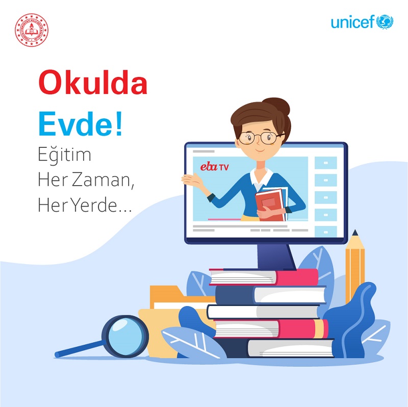 UNICEF Türkiye’nin Milli Eğitim Bakanlığı (MEB) ile birlikte yürüttüğü ulusal okula dönüş ve iletişim (OKULDA – EVDE! Eğitim Her zaman Her Yerde) kampanyası, Geçici Koruma Altındaki Suriyeli çocuklar da dâhil olmak üzere, tüm çocukların ve gençlerin kaliteli eğitim olanaklarına erişimini arttırmayı hedefliyor. Bu kampanya kapsamında hazırlanan Türkiye’de Okula Dönüş Kapsamında Topluma Erişim ve Destek Çalışmalarına Katılmayı Planlayan Kuruluşlara Yönelik Rehber adlı çalışma, bu yılın yaz aylarında Güneydoğu, İstanbul ve İzmir’den Eğitime Devam ve Okula Dönüş Görev Gücü Eğitim Sektörü Çalışma Grubu tarafından COVID-19 salgın koşullarında güncellenerek tekrar yayınlandı.