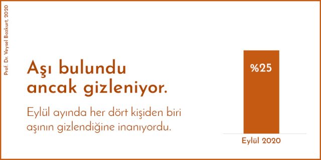 Aşı konusundaki gelişmelere rağmen Eylül 2020’de anketi cevaplayan her 4 kişiden birisi aşının bulunduğunu ancak gizleniyor olabileceğini düşünüyordu.