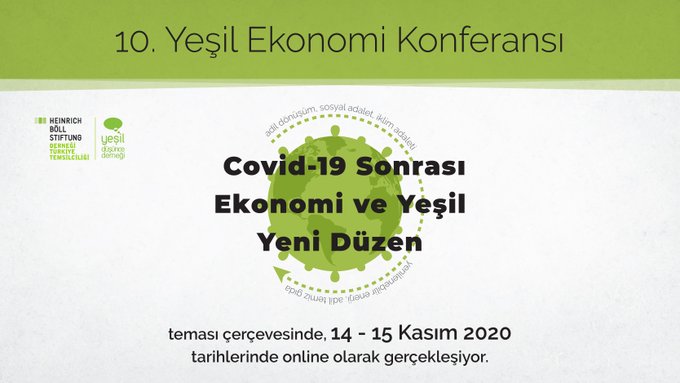Yeşil Düşünce Derneği, Heinrich Böll Vakfı ile düzenledikleri 10. Yeşil Ekonomi Konferansını 'Covid-19 Sonrası Ekonomi ve Yeşil Yeni Düzen' teması ile, 14-15 Kasım tarihlerinde online olarak gerçekleşiyor.