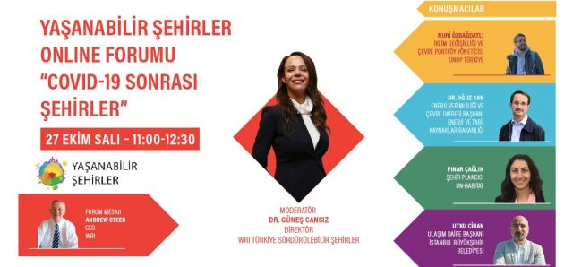 Salgınla en ön cephede mücadele edenlerin kent yönetimleri olduğunu, bu konuda da kentlerin birbirinden öğreneceği çok şey olduğunu vurgulayan WRI Türkiye Sürdürülebilir Şehirler Direktörü Dr. Güneş Cansız şöyle devam etti: “COVID-19 ile birlikte kentsel alanda insan yakınlığına dayanan her şey, ulaşım, altyapı, konut kullanımları, kültür sanat hizmetlerinin sunulma biçimleri, kentlerin ekonomiyi üretim ve dağıtım yapısı ve bu yapıya sosyal katılım sorgulanmaya başlandı. Ulaşım, dağıtım, depolama alanları ile çalışma ve yaşama alanlarının daha farklı planlanabileceği fikri ortaya çıktı. Bu anlayış önümüzdeki yıllarda kent planlamasına daha derinden ve dönüştürücü biçimde yansıyacak. Salgın dünya genelinde kentlerde planlama ve tasarımı, enerji kullanımını, hareketlilik modellerini, konut tercihlerini, yeşil alanları ve ulaşım sistemlerini dönüştürdü, dönüştürüyor. Değişikliklerin bir kısmı geçiciyken bir kısmı kalıcı. Kentler de aynı şekilde kullanım değişikliklerine geçici ya da kalıcı çözümlerle cevap veriyor.”