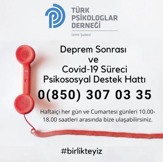 Türk Psikologlar Derneği, 30 Ekim 2020 tarihinde yaşanan İzmir Depremi'nde psikolojik desteğe ihtiyaç duyan kişilere gönüllü psiko-sosyal destek sunuyor. Sivil Toplum Destek Vakfı ve Turkey Mozaik Foundation’ın destekleriyle yapılan projenin koordinatörü Esma Çetin, depremzedelerin travma sonrası stres bozukluğu geliştirmelerine engel olmayı amaçladıklarını kaydediyor.