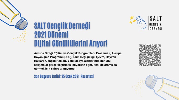 SALT Gençlik Derneği, dijital gönüllü arıyor. Son başvuru tarihi 25 Ocak 2021.