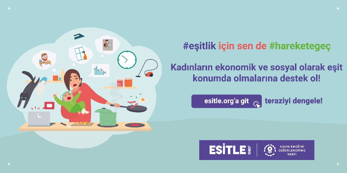 Türkiye’de 11 milyon kadının ev içi yük sebebiyle iş gücünün dışında kaldığı belirtilen kampanyada, terazinin dengelenmesi için esitle.org üzerinden imza verilmesi çağrısında bulunuluyor.