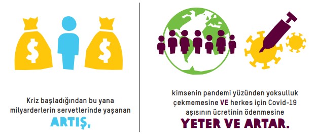 Dünyanın en zengin 10 erkeği, pandeminin başından bu yana toplam servetlerini yarım trilyon dolar arttırdılar; bu rakam herkesin Covid-19 aşısına erişmesini ve kimsenin salgın nedeniyle yoksulluğa sürüklenmemesini sağlamak için fazlasıyla yeterli. Aynı zamanda salgın son 90 yılın en kötü işsizlik krizini başlattı: Yüz milyonlarca insan ya işsiz ya da yeterli gelir elde edemediği işlerde çalışıyor.