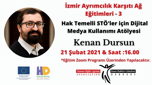 İnsan Hakları Gündemi Derneği, İzmir Ayrımcılık Karşıtı Ağ kapsamında yaptığı eğitim çalışmalarına Hak Temelli STÖ’ler için Dijital Medya Kullanımı Atölyesi ile devam ediyor. Eğitim 21 Şubat 2021 Pazar günü saat 16.00'da düzenlenecek.