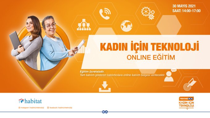 Habitat Derneği'nin Kadın için Teknoloji Projesi kapsamında düzenlediği, kadın için teknoloji eğitimleri 30 Mayıs 2021 tarihlerinde 14:00 – 17:00 saatleri arasında yapılacak.