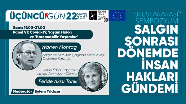 20-23 Mayıs 2021 tarihleri arasında TİHV tarafından düzenlenen sempozyumun “Covid-19, Yaşam Hakkı ve ‘Harcanabilir Yaşamlar’” panelinin ilk konuşmacısı Occidental College’dan edebiyat profesörü Warren Montag idi. Montag, ‘Salgın ve İklim Krizi Çağında Sınıf Savaşı: Terk Etme Stratejisi’ başlıklı sunumunun başında, yaşam hakkının yüzyıllara yayılan seyrinden günümüze gelindiğinde, pandemiye rağmen küresel düzeyde yaşam hakkının değil fikri mülkiyet haklarının korunmasına öncelik verildiğine dikkat çekti. Montag, aşılara ulaşamadığı için hayatını yitiren insanların durumunu “askeri müdahale ile sivil ölüme benzer bir etki” olarak tarif etti.