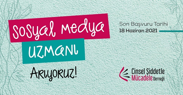 Cinsel Şiddetle Mücadele Derneği (CŞMD) Sosyal Medya Uzmanı olarak çalışacak ekip arkadaşı arıyor. Son başvuru tarihi 18 Haziran 2021, saat 18.00.