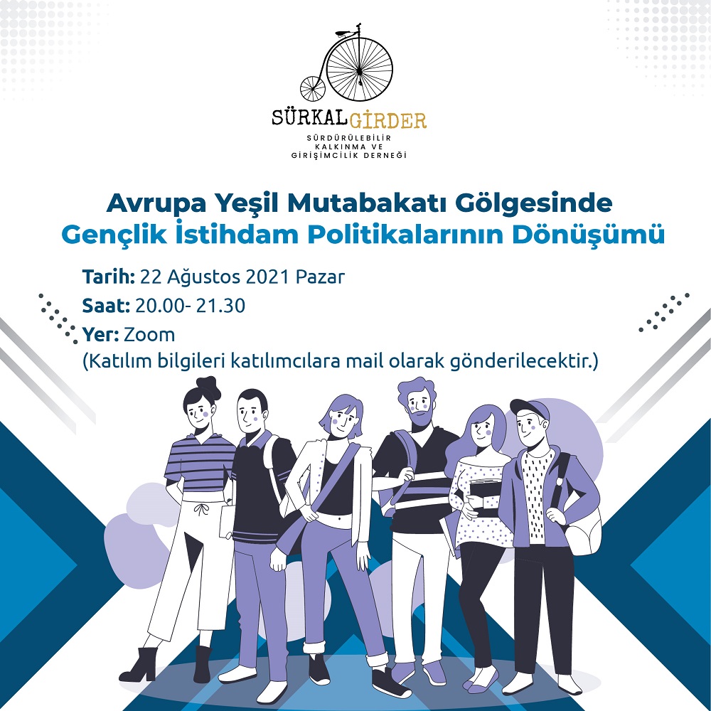 Sürdürülebilir Kalkınma ve Girişimcilik Derneği, BM 2030 Sürdürülebilir Kalkınma Amaçlarından İnsana Yakışır İş ve Ekonomik Büyüme amacı bağlamında Avrupa Yeşil Mutabakatı’nın yarattığı yeşil dönüşüm ile birlikte değişen istihdam politikalarını gençlik bağlamında değerlendireceği toplantılarına davet ediyor.