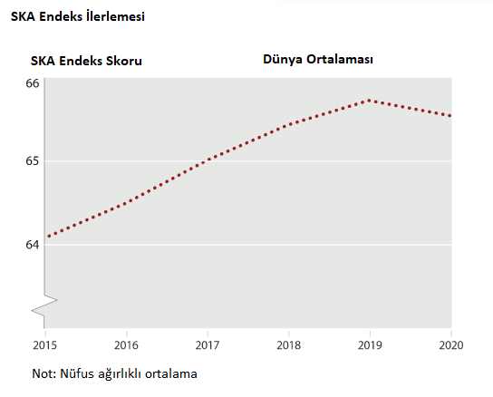 Büyük oranda pandemiden sonra artan yoksulluk rakamları ve işsizlik bu düşüşe neden olurken; 2020 için birçok veri, uluslararası istatistiklerin gecikmesinden dolayı hazır olmadığı için, küresel olarak SKA performansındaki düşüş; bu yılki raporda muhtemelen net gerilemenin oranından daha düşük olabilir.