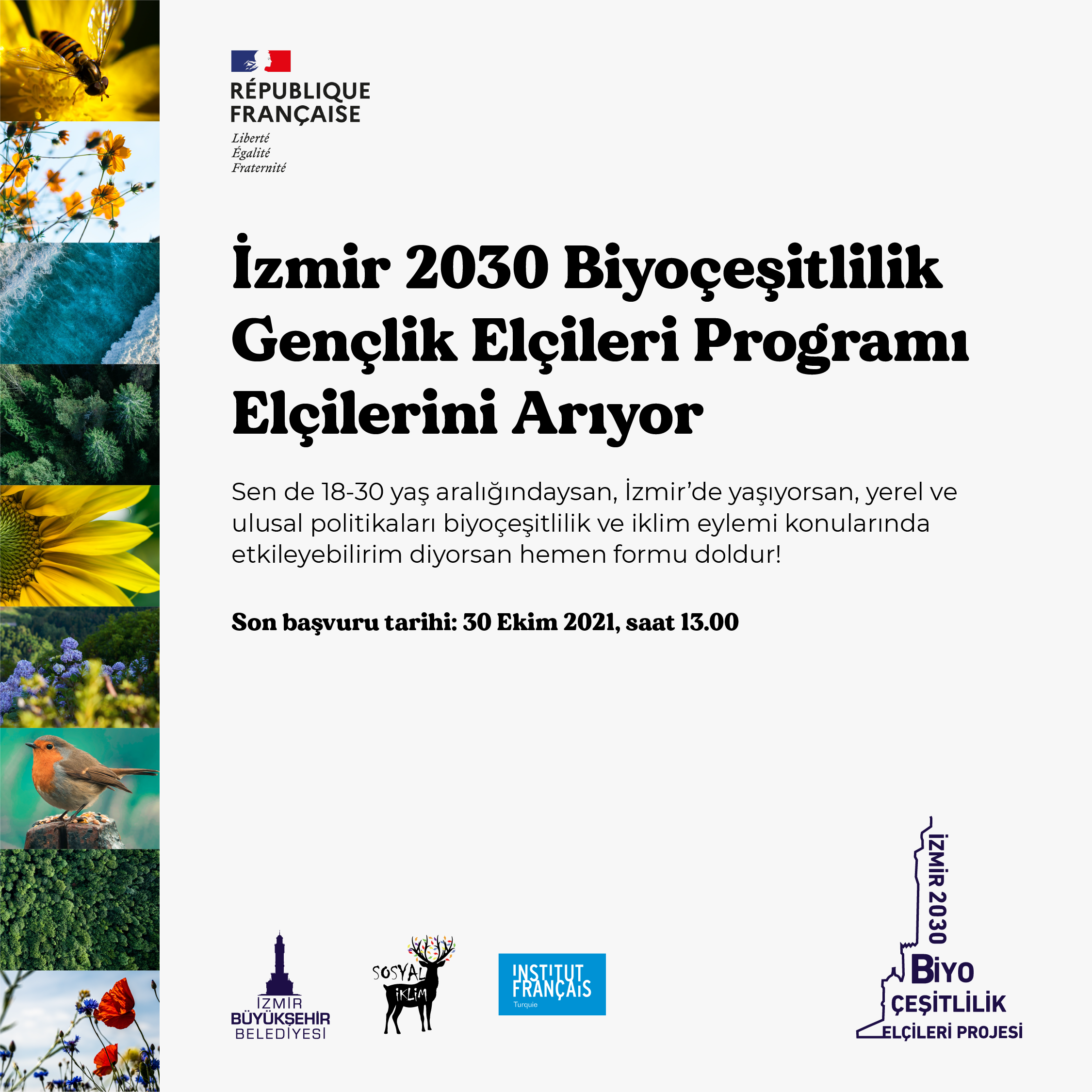 - İzmir 2030 Biyoçeşitlilik Gençlik Elçileri Programı, Fransa’nın Türkiye Büyükelçiliği ve İzmir Büyükşehir Belediyesi iş birliği ile gerçekleştiriliyor.