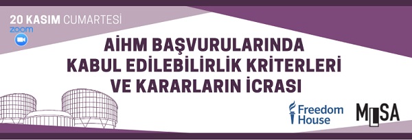 Medya ve Hukuk Çalışmaları Derneği (MLSA) ve Freedom House, 20 Kasım 2021 Cumartesi günü 'Avrupa İnsan Hakları Mahkemesi Başvurularında Kabul Edilebilirlik Kriterleri ve Kararların İcrası' başlıklı çevrim içi eğitim düzenliyor.
