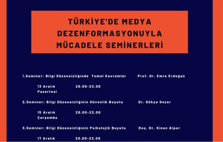 Açık erişimli Dezenformasyon Eğitimi halen devam etmekle beraber, 13 Aralık’ta başlanacak “Türkiye’de Medya Dezenformasyonuyla Mücadele” başlıklı programda medya ve STK çalışanları/temsilcileri için 6 seminerden oluşacak kapsamlı bir seri hazırlandı.