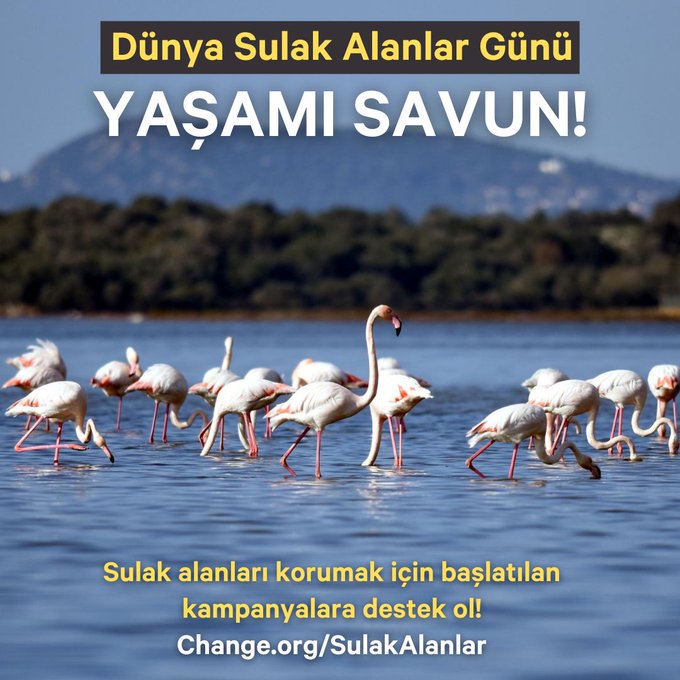 Bugün Dünya Sulak Alanlar Günü. Türkiye'de son 50 yılda kuruyan sulak alanlardaki su kütlesi miktarı 24 Eğirdir Gölü veya 3 Van Gölü büyüklüğünde. Change.org Türkiye, Dünya Sulak Alanlar Günü’nde yurttaşların ve kurumların sulak alan korumayı hedefleyen 30 kampanyasını bir araya getirdi. Bu kampanyalara 500 bine yakın kişi imza attı.