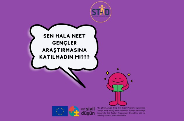 Sivil Toplum Araştırmaları Derneği, AB Sivil Düşün Programı desteğiyle yürüttüğü 'Ne Eğitimde Ne İstihdamda Yer Alan Gençlerin İnsan Onuruna Yaraşır Yaşam Sürme Hakkına Erişimi' Projesi kapsamında bir anket çalışmasına desteğinizi bekliyor.