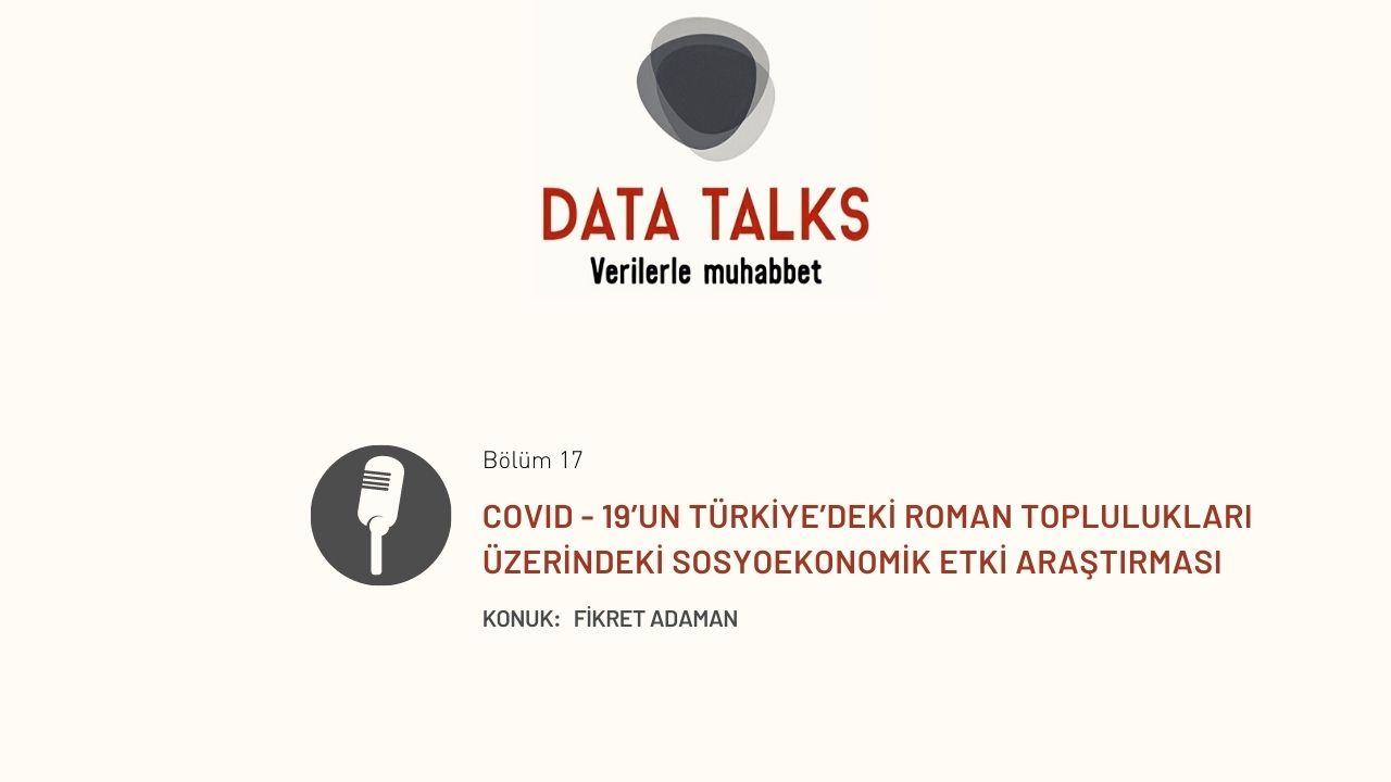 Data Talks'un bu bölümünde Boğaziçi Üniversitesi’nden Fikret Adaman ile Sıfır Ayrımcılık Derneği’nin “COVID - 19’un Türkiye’deki Roman Toplulukları Üzerindeki Sosyoekonomik Etki Araştırması” konuşuldu. Araştırma sonuçlarına göre, Romanlar pandemiyi toplumun genelinde daha kötü geçirdi: Evler çok kalabalık olduğu için bakım sorunları, iyi beslenme imkanları olmaması, uzaktan eğitime erişim gibi zorluklarla karşılaştılar.