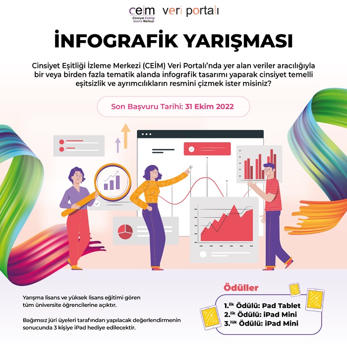 Cinsiyet Eşitliği İzleme Derneği, CEİDizler Projesi kapsamında bir infografik poster tasarım yarışması düzenliyor. Yarışmaya son başvuru tarihi 31 Ekim.