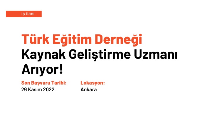 Türk Eğitim Derneği Kaynak Geliştirme Uzmanı Arıyor