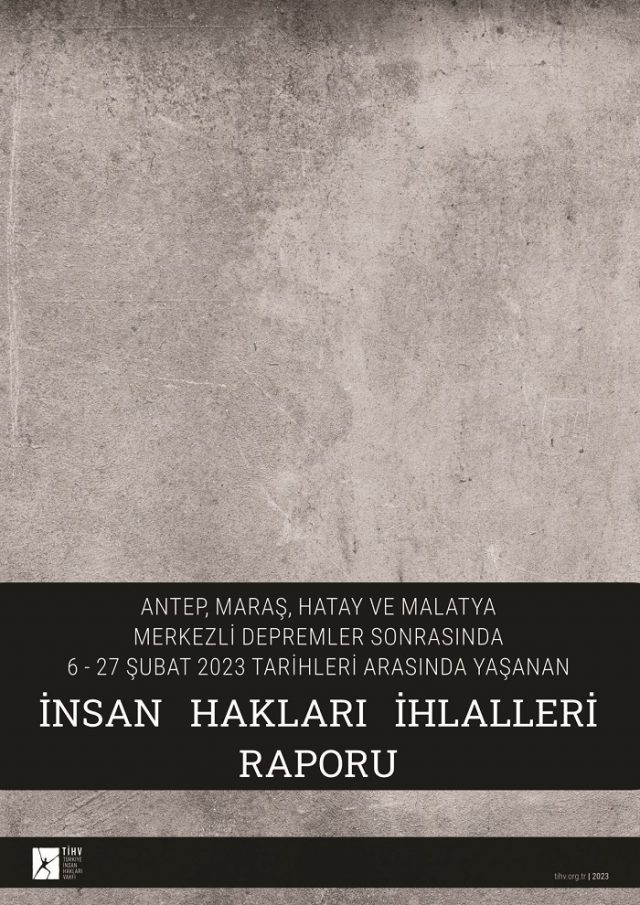 TİHV Dokümantasyon Merkezi, “Antep, Maraş, Hatay ve Malatya Merkezli Depremler Sonrasında 6 – 27 Şubat 2023 Tarihleri Arasında Yaşanan İnsan Hakları İhlalleri Raporu”nu açıkladı. Yazılı ve görsel basının, uzmanlık ve meslek örgütleri ile diğer insan hakları örgütlerinin yaptığı açıklama ve raporların taranması yoluyla hazırlanan rapora göre, yaşananlar “hakikati görünmez kılmak amacıyla hak bakış açısının tümüyle terk edildiğini endişe verici bir şekilde ortaya koyuyor.”