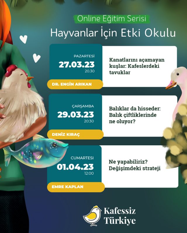 Kafessiz Türkiye tarafından düzenlenen Hayvanlar için Etki Okulu Online Eğitim Serisi 27 Mart’ta başlıyor!