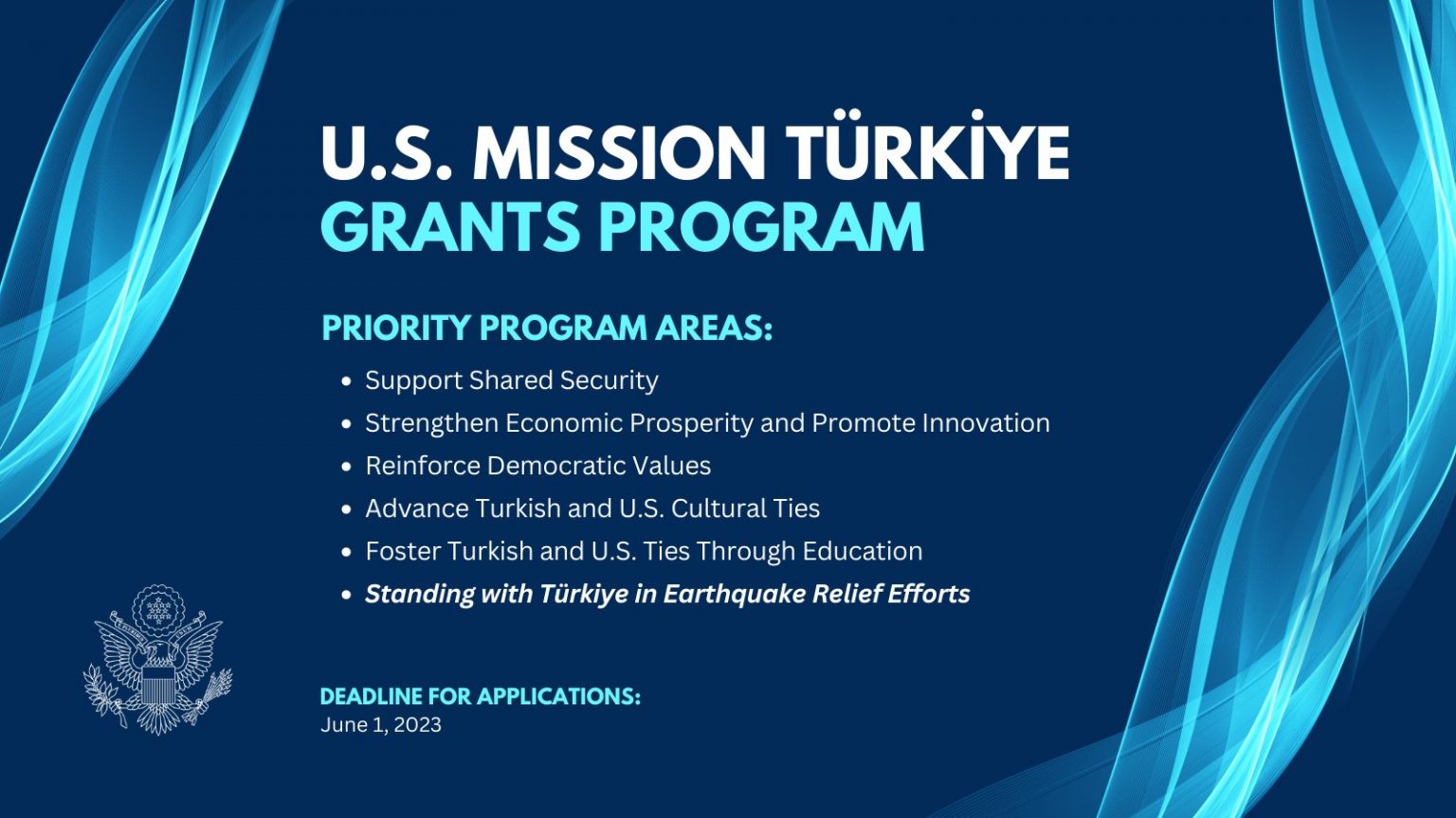 ABD Türkiye Temsilciliği, deprem sonrasında Türkiye’nin yanındayız mesajı ile ve ABD-Türkiye bağlarını güçlendirmeye, ortak değerleri vurgulamaya ve ikili iş birliğini geliştirmeye yönelik programlar için teklif çağrısında bulundu.