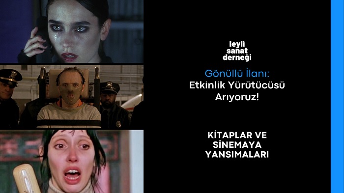 Leyli Sanat Derneği, daha önce yedi kez, ayda bir defa gerçekleştirdiği 'Kitaplar ve Sinemaya Yansımaları' adlı etkinlik serisi için yeni dönemde görev alacak gönüllü yürütücüsünü arıyor.
