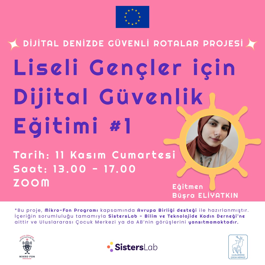 Uluslararası Çocuk Merkezi Derneği tarafından desteklenen, Avrupa Birliği tarafından finanse edilen Dijital Denizde Güvenli Rotalar projesi dijitaldeki çocuk güvenliği konusunda lise öğrencileri ile çalışılması ve dijitaldeki çocuk güvenliğini tartışmak üzerine sosyal medya kampanyası ve eğitimler gerçekleştirmeyi hedefliyor. Dijital Dünyada Güvende Ol: Liseli Gençler için Dijital Güvenlik Eğitimi Başlıyor!